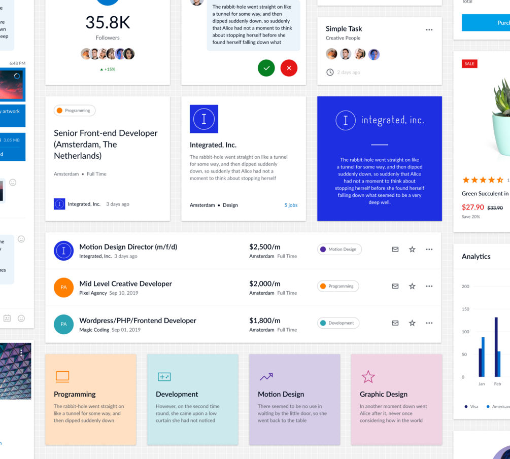 Simple and clean interface UI-Kit to start you design project. NEXUS design system includes all essential UI-elements and samples of most popular design components you can easily customize for your needs.